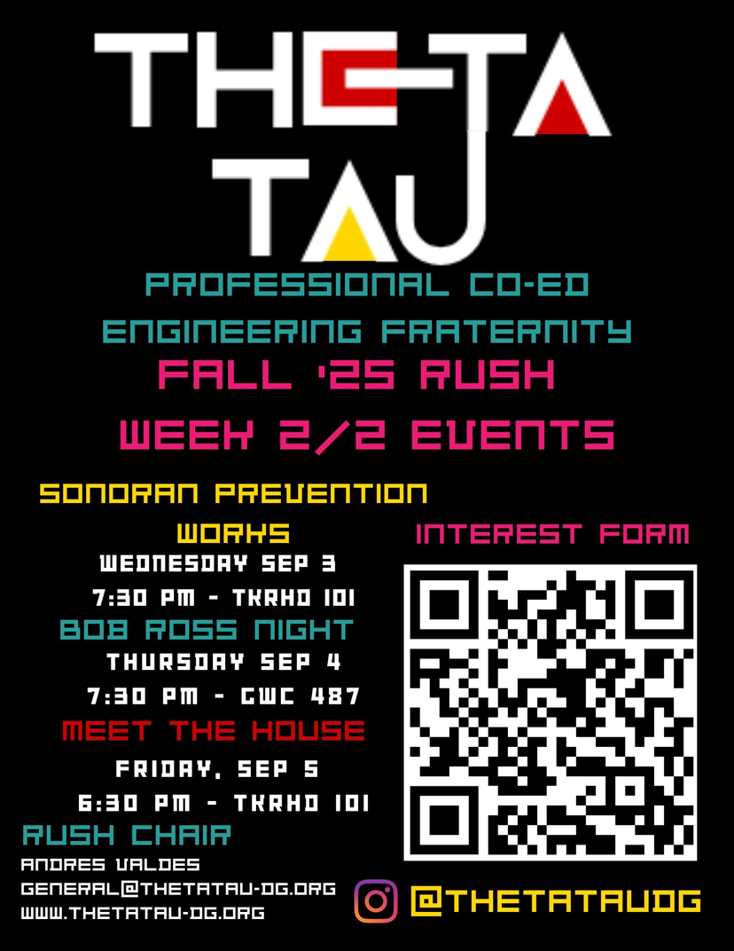 Whether you want to build connections, develop professional skills, or just come for the free pizza, there are plenty of reasons to rush Theta Tau. For many engineering students here at ASU, Theta Tau is the defining part of their college experience. As the oldest and largest coed engineering fraternity in the nation, joining Theta Tau can open up a whole world of possibilities to the aspiring engineer.